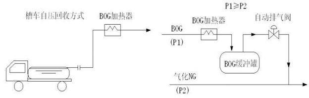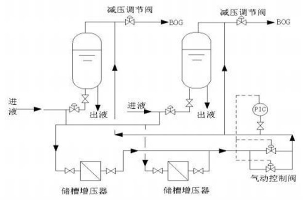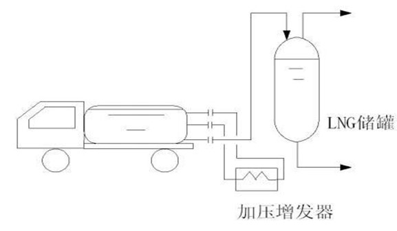 Bể chứa xe bồn được điều áp thông qua bộ tăng áp không tải. Khi áp suất của bể chứa xe bồn lớn hơn áp suất của bể chứa chất lỏng đầu vào 0.2Mpa, chênh lệch áp suất được sử dụng để vận chuyển LNG đến bể chứa qua đường ống.