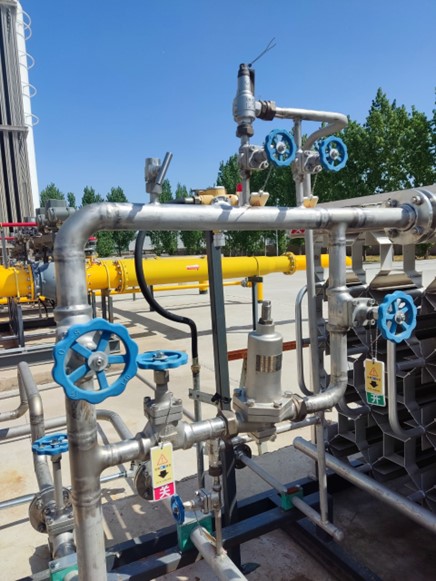 Nếu áp suất trong bể chứa hoặc đường ống tăng mạnh, khi vượt quá áp suất nhảy của van an toàn, van an toàn sẽ hoạt động, giải phóng khí quá áp, thông qua bộ nhiệt EAG, khí tự nhiên ở nhiệt độ thấp rỗng được làm nóng tâp trung và thải ra sau chống cháy, để bảo vệ bể chứa và đường ống.